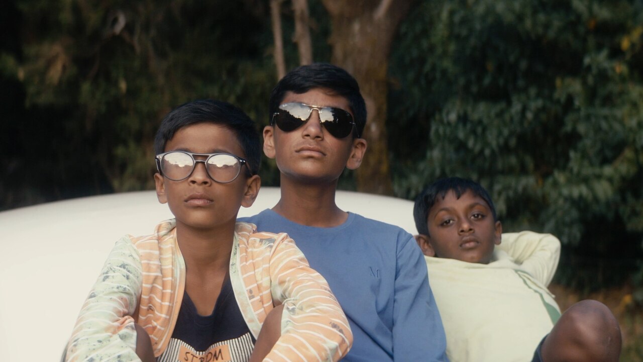 After a while, your mind starts wandering to other things. The children watch Baby's Day Out near the beginning of the film, but they do not talk about it afterward. Did they like it? What did they respond to? Both Karthik and Dhruv are seen in the company of girls who make them blush, who make them smile. No boy goes about the rest of his day without thinking about such encounters or talking about them with friends. And the boys do have friends, yet Prakash does not show a single conversation between them. He also elides the political details of the period, placing Naangal in a hermetically sealed world where nothing external intrudes upon the family's life. The movie posters (Hey Ram, Baby's Day Out), the candies (Boomer), and the libraries with their Hardy Boys and Tintin—detached from the characters' inner lives—become aesthetic embellishments. This distance allows Prakash to focus more sharply on his characters' emotions, but the resulting drama feels thin. You learn everything about the family quickly and are left with plot details—like a flashback that briefly shows Rajkumar, the happy family man, becoming Rajkumar, the ambitious businessman—that largely repeat what the film has made clear already, or rather, what you can deduce on your own by simply observing the moods and the mannerisms of the family.