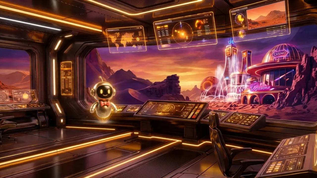 If you look at the visual presentation of Vegazone сasino, the association with late-20th-century classic science fiction appears quite quickly — above all with Paul Verhoeven’s Total Recall. Familiar elements are easy to spot here: a Martian colour palette, futuristic forms, spatial depth, neon lighting, and the feeling that the user is entering not just a website, but a separate digital reality.